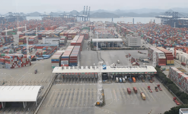 港口再次堆滿海運(yùn)集裝箱