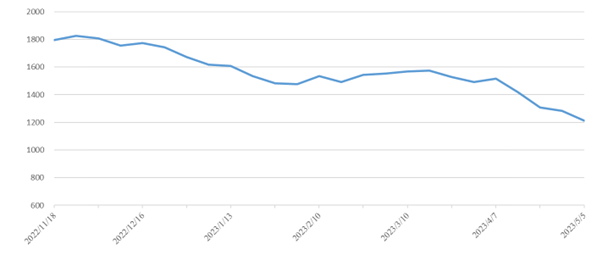 節(jié)后市場保持下行趨勢(2023年4月29日至5月05日)中國內(nèi)貿(mào)集裝箱運價指數(shù)環(huán)比同比下跌
